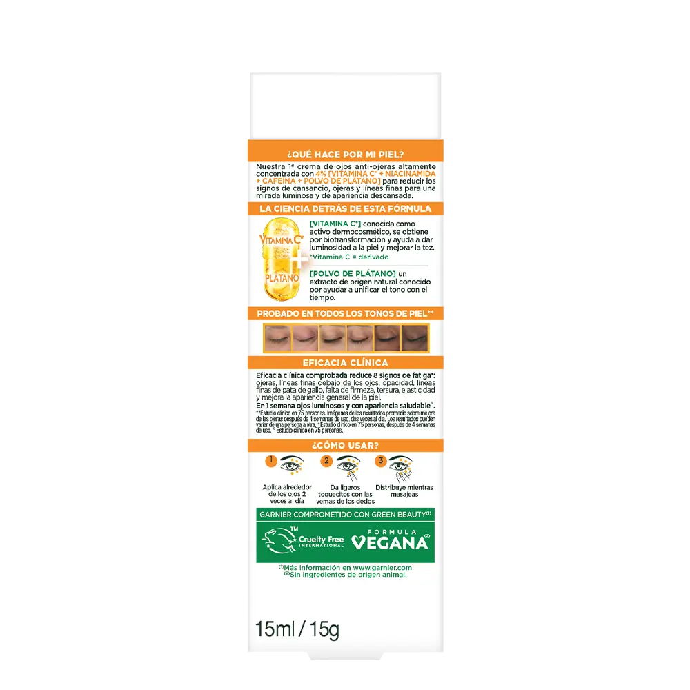 Despertá una mirada más fresca y luminosa con la Crema de Ojos Garnier Express Aclara, formulada con vitamina C y otros ingredientes activos que ayudan a reducir visiblemente las ojeras oscuras, hidratar el contorno de ojos y mejorar la luminosidad de la piel.