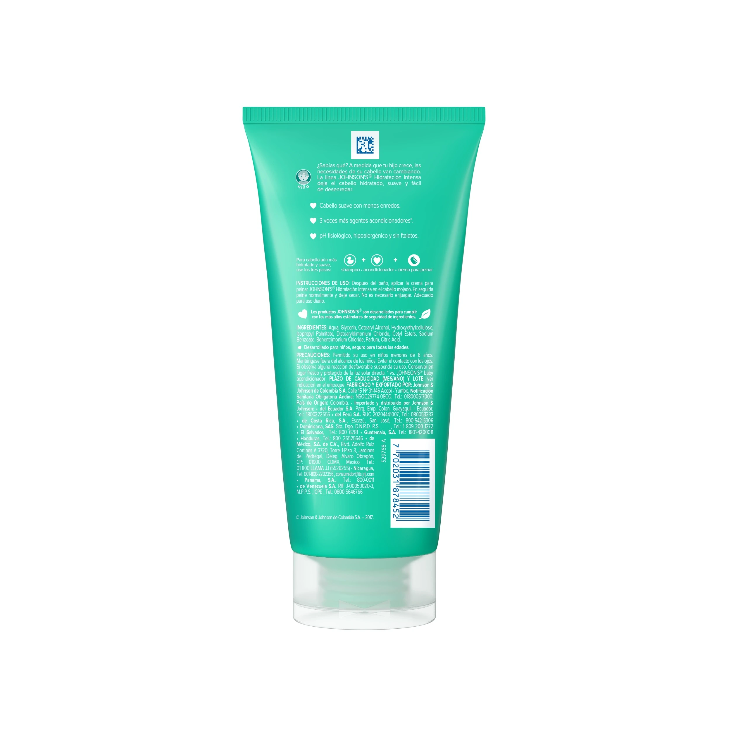 La Crema para Peinar Johnson’s Hidratación Intensa 200 ml ha sido diseñada para dejar el cabello infantil más suave, fácil de manejar y libre de enredos. Su fórmula contiene 3 veces más agentes acondicionadores para una hidratación intensa sin dejar sensación grasosa.