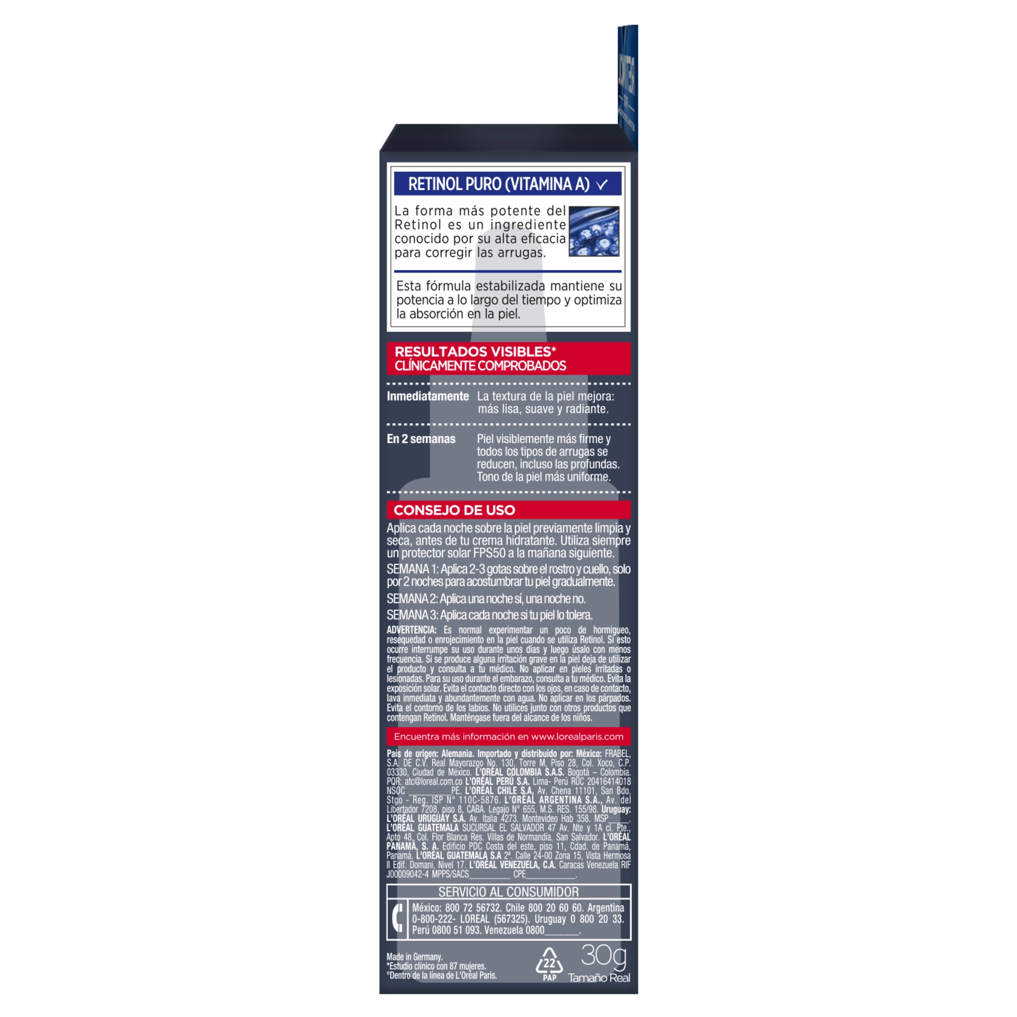 Sérum nocturno con retinol puro que reduce visiblemente arrugas profundas, mejora la textura y renueva la piel noche tras noche.