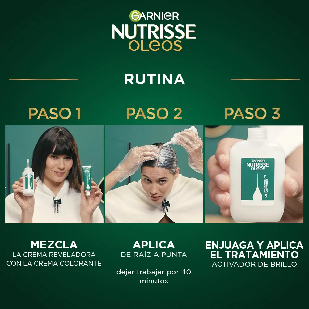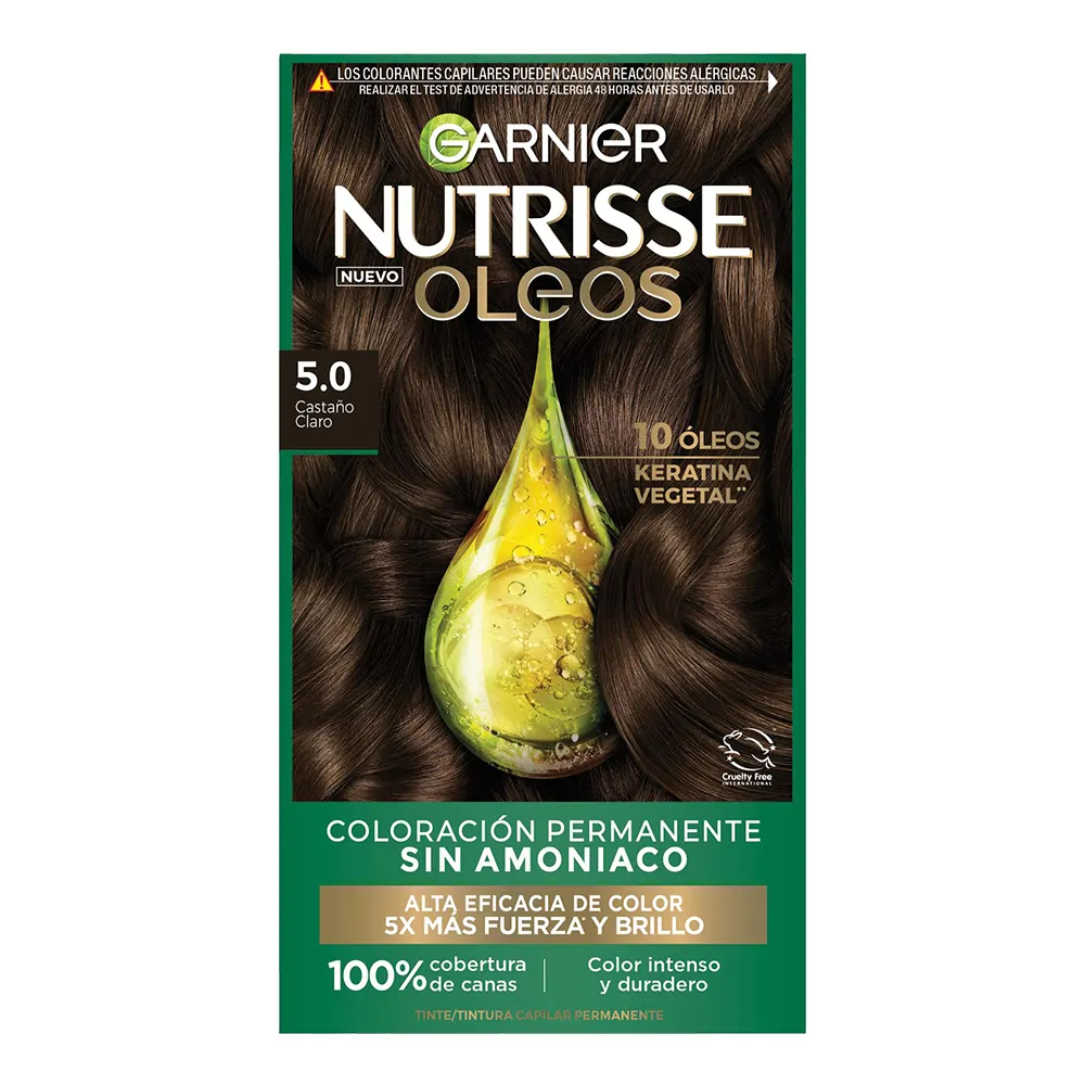 Transformá tu look sin comprometer la salud de tu cabello con Garnier Nutrisse Óleos Sin Amoníaco, la coloración permanente que nutre mientras colorea. Su fórmula innovadora está enriquecida con una mezcla de aceites naturales (aguacate, oliva, karité, y uva) que penetran profundamente para dejar el cabello más suave, brillante y con un aspecto saludable.