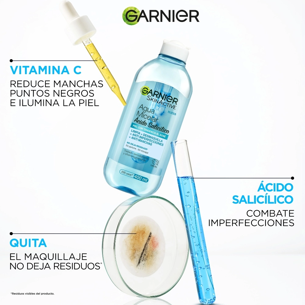 Descubrí el poder de una limpieza profunda y suave con la Agua Micelar Garnier Express Aclara Anti-Acné, una fórmula todo en 1 con vitamina C y ácido salicílico que remueve maquillaje, limpia impurezas y ayuda a combatir imperfecciones sin resecar la piel.