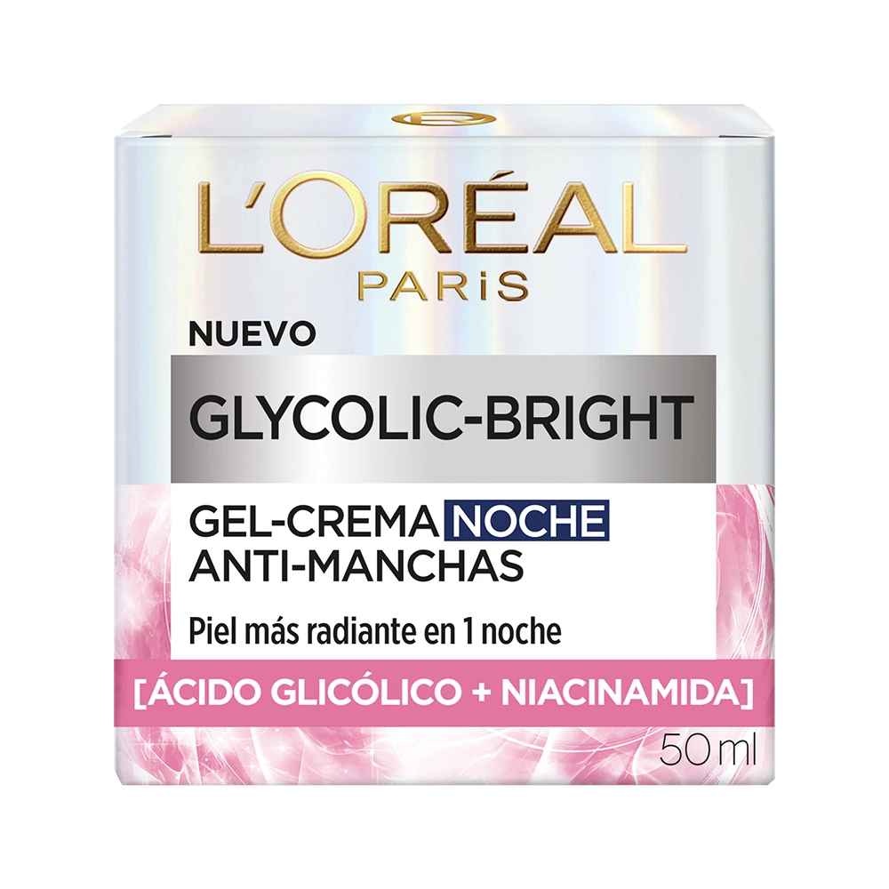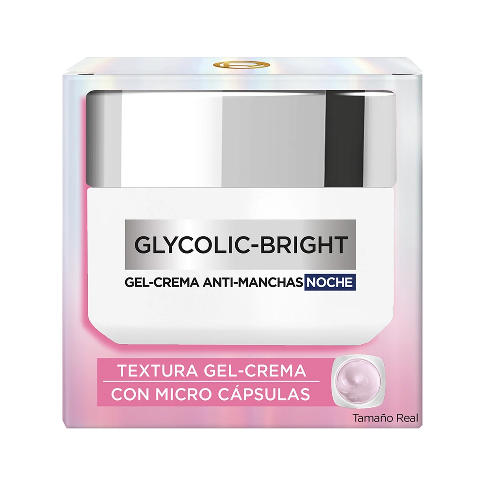 Despertá con una piel más luminosa, suave y uniforme gracias a la Gel-Crema de Noche L’Oréal Paris Glycolic Bright, enriquecida con ácido glicólico puro. Su fórmula ligera tipo gel actúa durante la noche para acelerar la renovación celular, disminuir manchas oscuras y mejorar visiblemente la textura y el tono de la piel.