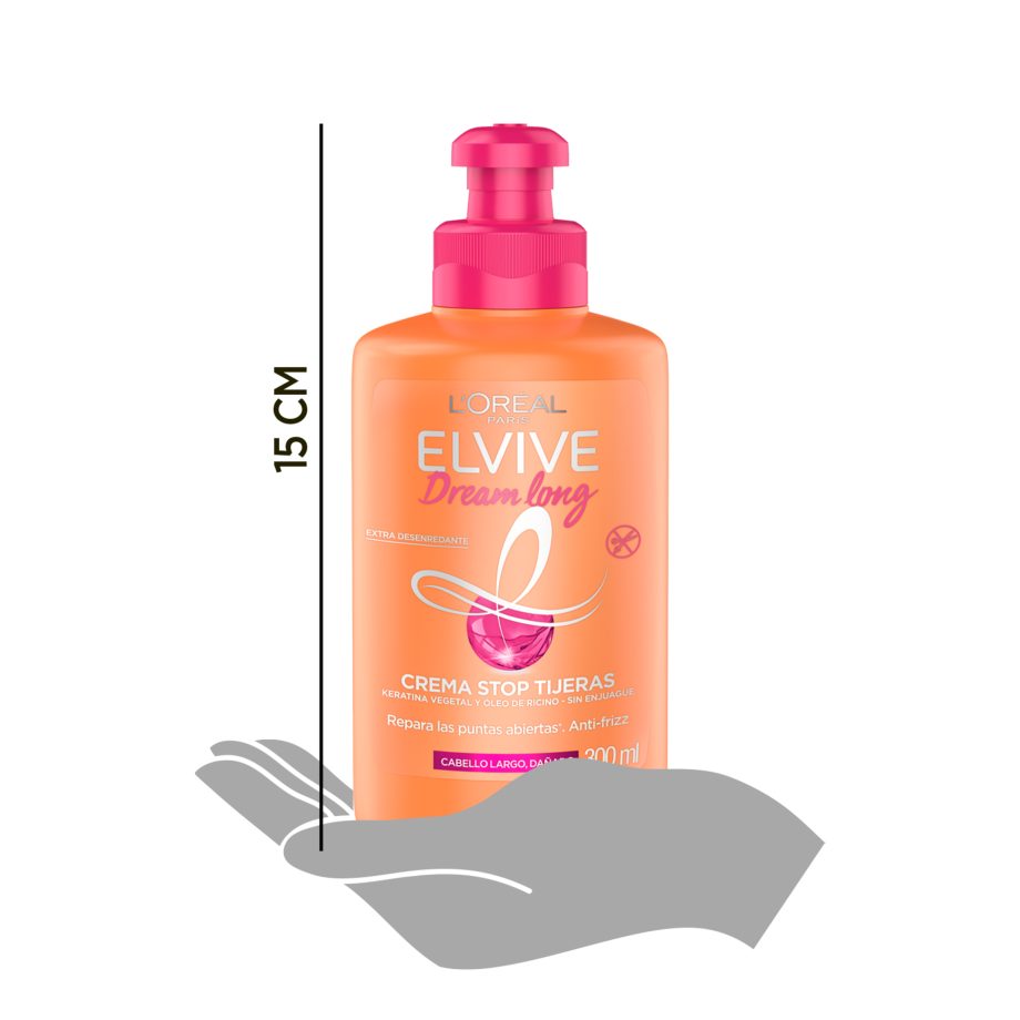 Decile adiós a las tijeras y lucí un largo soñado con la Crema para Peinar L’Oréal Elvive Dream Long, enriquecida con keratina vegetal, aceite de ricino y vitaminas que ayudan a reparar el daño, desenredar fácilmente y proteger el cabello contra el quiebre.