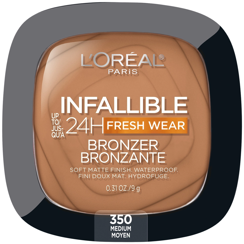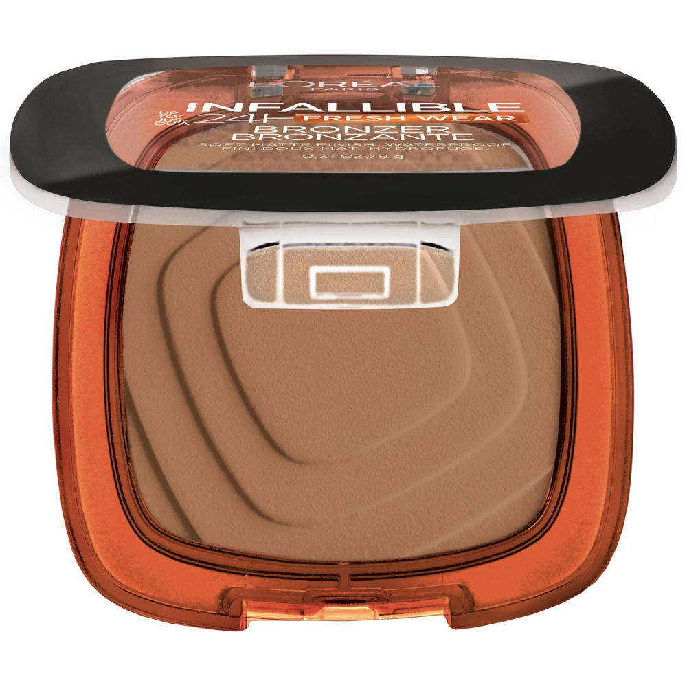 El Bronzer L’Oréal Infallible Fresh Wear es un polvo bronceador de larga duración con textura ultraligera que se difumina fácilmente para lograr un acabado natural y soleado. Formulado para resistir el sudor, el agua y la humedad, mantiene tu look intacto hasta por 24 horas.
