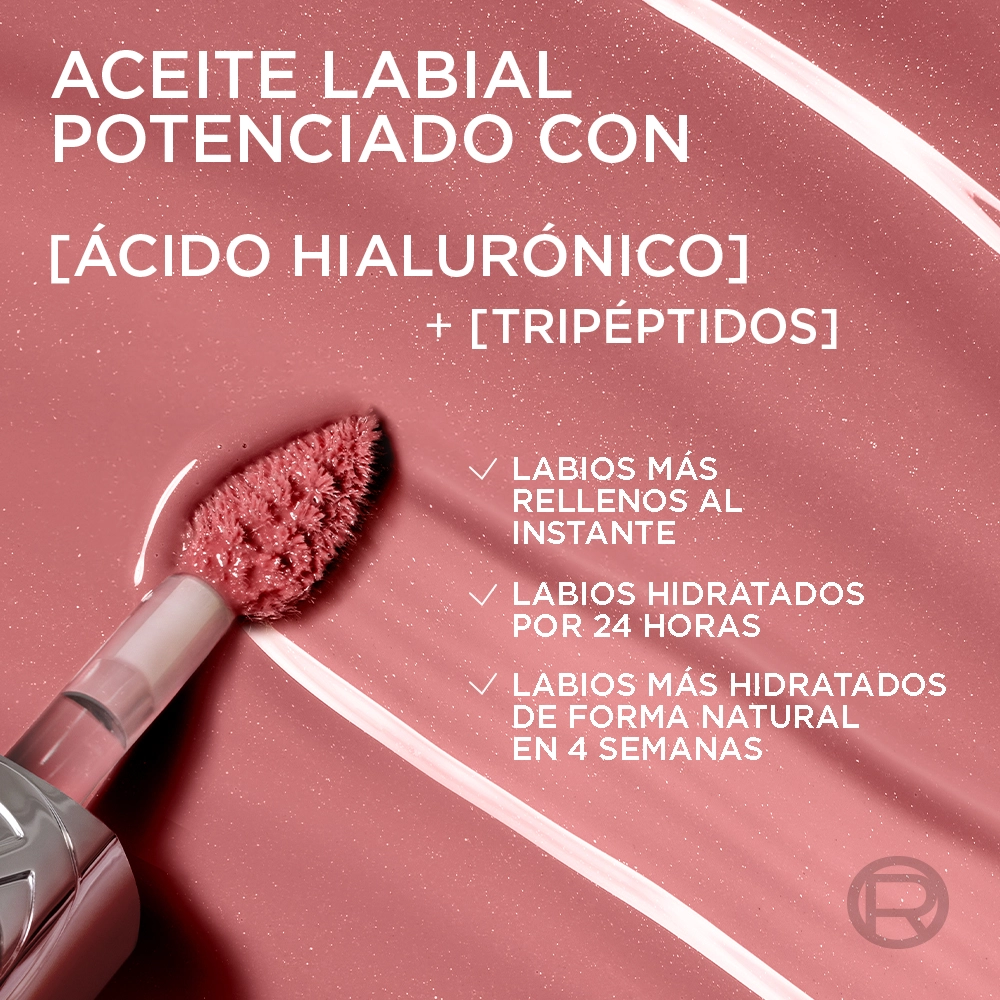El L’Oréal Paris Plump Ambition Hyaluron Lip Oil es el secreto para unos labios hidratados, suaves y con volumen instantáneo. Formulado con ácido hialurónico y tripéptidos, aporta hasta 24 horas de hidratación intensa mientras brinda un brillo cristalino y no pegajoso .