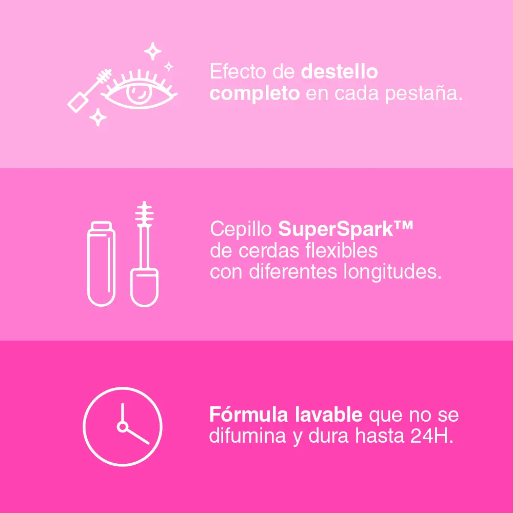 La Máscara de Pestañas Maybelline Lash Sensational Firework ofrece un volumen explosivo y definición en cada pestaña, creando un efecto de «abanico de fuegos artificiales». Su exclusivo cepillo con cerdas de múltiples longitudes captura incluso las pestañas más pequeñas, logrando un acabado intenso, curvado y alargado desde la raíz hasta la punta.