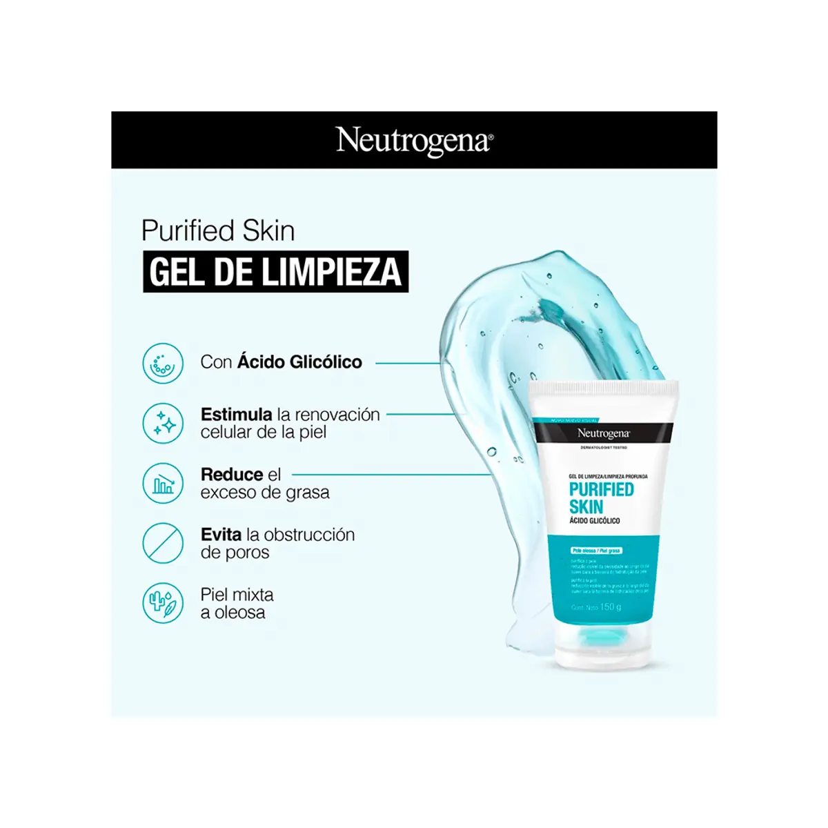 El Neutrogena Purified Skin Gel Limpiador Facial ofrece una limpieza purificante y profunda que elimina eficazmente impurezas, exceso de grasa y toxinas acumuladas en la piel. Su fórmula con ácido glicólico ayuda a renovar las células superficiales, promoviendo una piel más limpia, fresca y luminosa desde el primer uso.