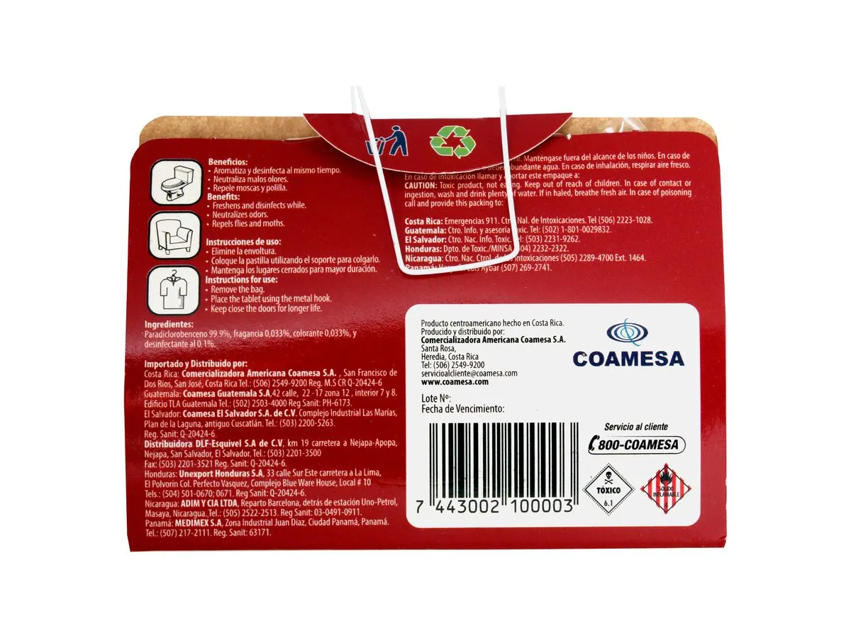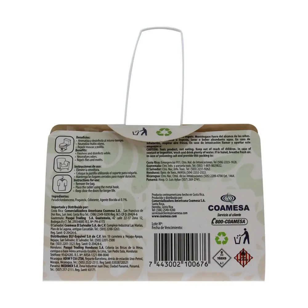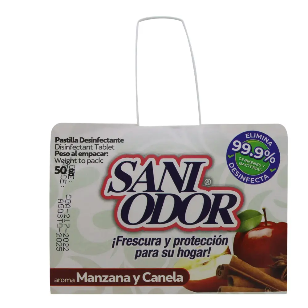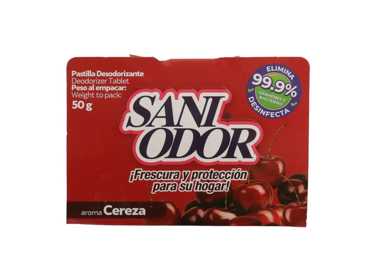 Sani Odor es una tableta desinfectante que actúa eficazmente eliminando el 99.9% de gérmenes y bacterias, mientras deja un agradable aroma que perdura. Es ideal para espacios como baños, closets, cuartos cerrados, automóviles y más.